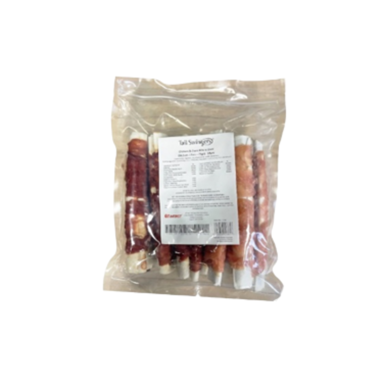 Recompense pentru câini, Tail Swingers, sticks pufoase cu carne de pui, 20 cm, diamentru 3,5 cm, 80 g, 12 buc, bogate în proteine și gustări delicioase