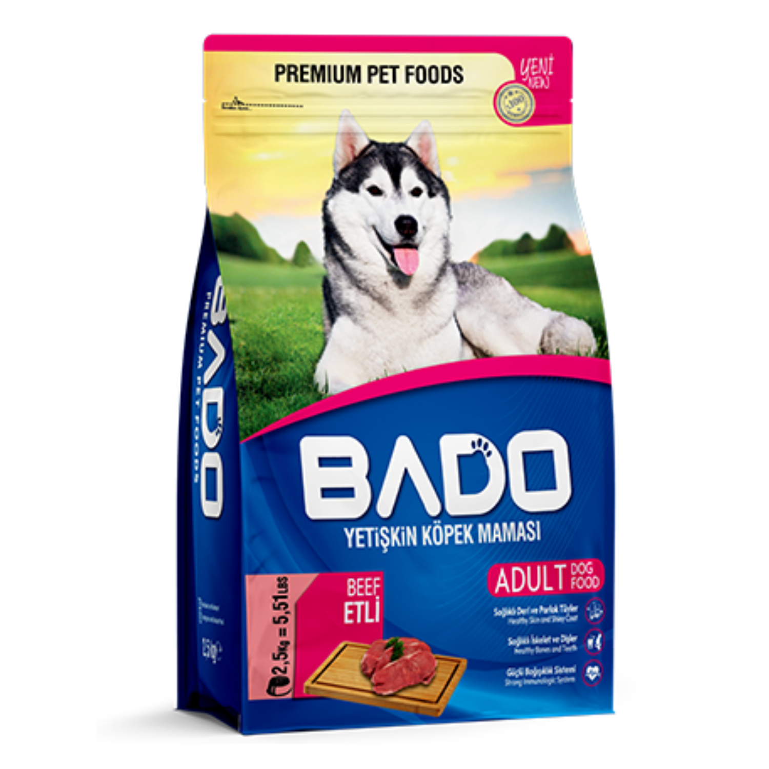 Hrană uscată câine adult, Bado, cu carne de vită, 2.5 kg, nutriție completă, vitalitate zilnică, oase puternice