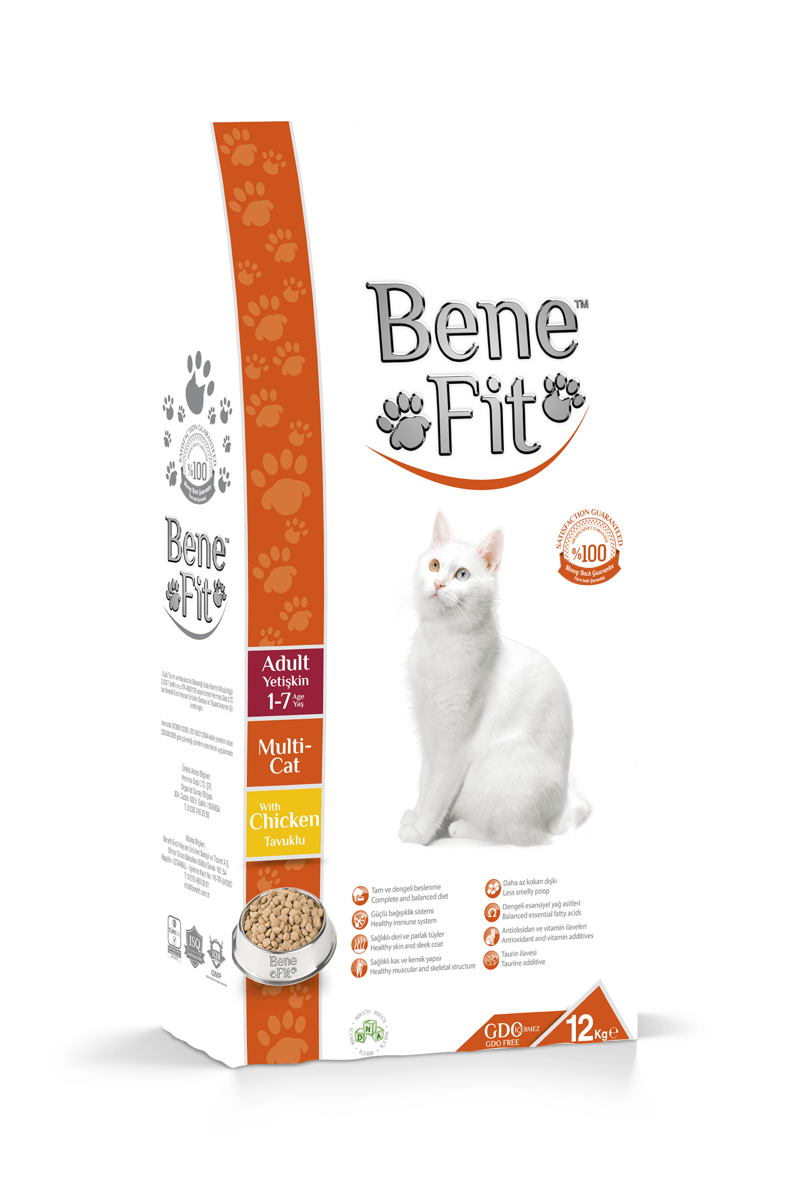 Benefit oferă o hrană premium pentru pisici adulte, cu un conținut ridicat de proteină de pui și orez, îmbogățită cu vitamine, minerale și nutrienți funcționali. Formula sprijină digestia, sănătatea tractului urinar, imunitatea și blana strălucitoare, fiind o alegere completă și gustoasă pentru pisici.