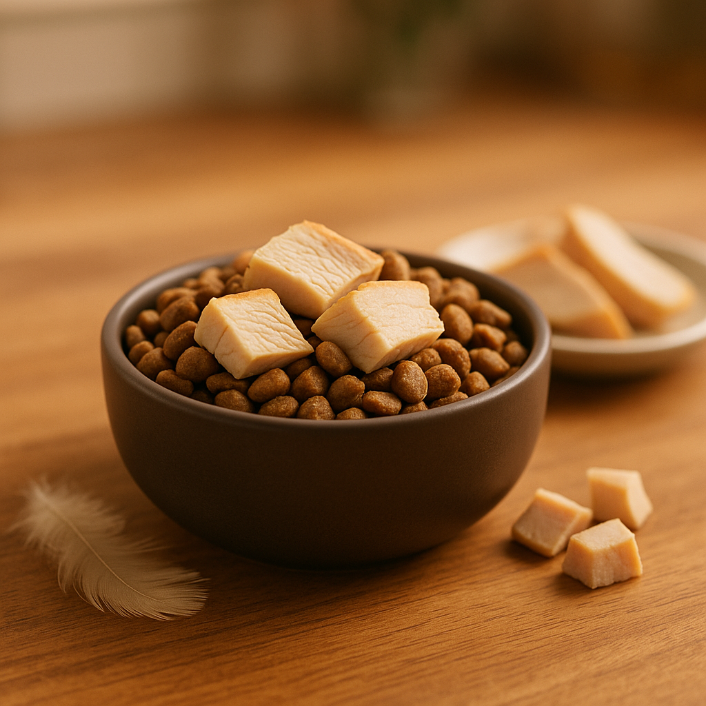 Gust delicios de pui, nutriție completă pentru vitalitatea și frumusețea pisicii tale.